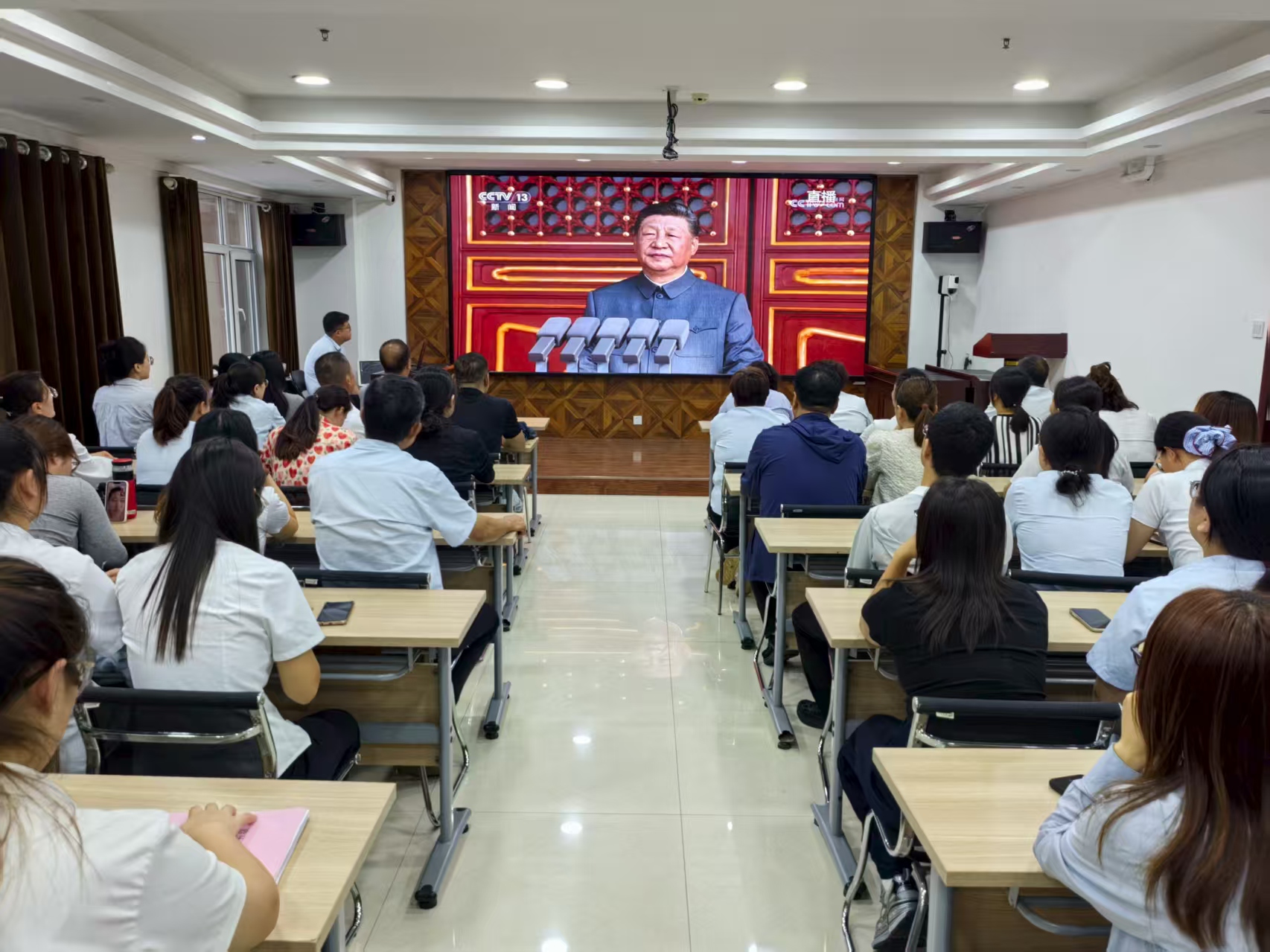 秋日的北京,長(zhǎng)風(fēng)浩蕩,花團(tuán)錦簇,旌旗飄揚(yáng)。上午9時(shí),隨著聯(lián)合軍樂(lè)團(tuán)奏響雄壯的《義勇軍進(jìn)行曲》,全場(chǎng)齊聲高唱中華人民共和國(guó)國(guó)歌,鮮艷奪目的五星紅旗冉冉升起,在天安門(mén)廣場(chǎng)上空高高飄揚(yáng)。習(xí)近平總書(shū)記在大會(huì)上發(fā)表重要講話(huà)。 9時(shí)15分,閱兵儀式開(kāi)始。受閱部隊(duì)軍容嚴(yán)整、意氣風(fēng)發(fā),鐵甲戰(zhàn)車(chē)整齊列陣、威風(fēng)凜凜,接受習(xí)近平總書(shū)記的檢閱。 9時(shí)44分,空中護(hù)旗梯隊(duì)率先亮相,揭開(kāi)閱兵分列式的序幕。 雄師列陣,氣勢(shì)如虹。陸軍方隊(duì)、海軍方隊(duì)、空軍方隊(duì)、火箭軍方隊(duì)威武雄壯,步履鏗鏘;軍事航天部隊(duì)方隊(duì)、網(wǎng)絡(luò)空間部隊(duì)方隊(duì)、信息支援部隊(duì)方隊(duì)、聯(lián)勤保障部隊(duì)方隊(duì)精神抖擻,整齊劃一;武警部隊(duì)方隊(duì)雄姿勃發(fā),氣勢(shì)昂揚(yáng)……徒步方隊(duì),英姿颯爽,展現(xiàn)軍人亮麗風(fēng)采。 戰(zhàn)旗獵獵,鐵流滾滾。戰(zhàn)旗方隊(duì)、裝備方隊(duì)一一通過(guò)天安門(mén)城樓,接受檢閱。新型坦克、無(wú)人智能、網(wǎng)電作戰(zhàn)、高超聲速、防空反導(dǎo)、戰(zhàn)略導(dǎo)彈……亮相閱兵場(chǎng)。國(guó)之重器,壓艙基石,彰顯國(guó)家國(guó)防實(shí)力。 戰(zhàn)鷹呼嘯,振翅長(zhǎng)空。預(yù)警指揮機(jī)、特種機(jī)、運(yùn)輸機(jī)、轟炸機(jī)、加受油機(jī)、殲擊機(jī)、艦載機(jī)等空中梯隊(duì)依次低空飛過(guò)天安門(mén)廣場(chǎng)。7架殲-10拉出14道彩煙,寓意著中華民族14年可歌可泣的抗戰(zhàn)歷程,展示翱翔天際的“硬核浪漫”。 觀(guān)看過(guò)程中,現(xiàn)場(chǎng)氣氛熱烈,振奮人心,公司干部職工難掩激動(dòng),全體人員接受了一次深刻的愛(ài)國(guó)主義教育。大家被習(xí)近平總書(shū)記的講話(huà)深深感染,被人民解放軍的軍容軍貌和軍事裝備的實(shí)力展示深深震撼,看到祖國(guó)的強(qiáng)大,每個(gè)人心中都涌起一種強(qiáng)烈的自豪感,激蕩起澎湃的愛(ài)國(guó)情懷。 大家表示,新時(shí)代新征程,將始終堅(jiān)持以習(xí)近平新時(shí)代中國(guó)特色社會(huì)主義思想為指引,深入學(xué)習(xí)貫徹習(xí)近平總書(shū)記在大會(huì)上的重要講話(huà)精神,深刻領(lǐng)會(huì)中國(guó)人民抗日戰(zhàn)爭(zhēng)勝利的偉大歷史意義,傳承和弘揚(yáng)偉大抗戰(zhàn)精神、愛(ài)國(guó)主義精神,銘記歷史、緬懷先烈、珍愛(ài)和平、開(kāi)創(chuàng)未來(lái)。要加強(qiáng)學(xué)習(xí)提升自身素質(zhì),立足崗位做好各項(xiàng)工作,敬業(yè)奉獻(xiàn)抓好服務(wù)管理,實(shí)干擔(dān)當(dāng)推動(dòng)企業(yè)發(fā)展,為集團(tuán)高質(zhì)量發(fā)展貢獻(xiàn)自己的力量。 |